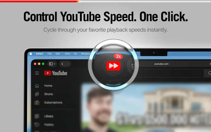 Die integrierten Safari-Geschwindigkeitskontrollen sind in Rechtsklick-Menüs versteckt und auf wenige Optionen beschränkt. SpeedTube platziert die Geschwindigkeitssteuerung direkt in Ihrer Symbolleiste. Ein Klick zum Ändern der Geschwindigkeit, anpassbare Voreinstellungen von 0.25x bis 5x, und Ihre Einstellungen bleiben sitzungsübergreifend erhalten. Ob Sie Vorlesungen schnell durchgehen, Tutorials verlangsamen oder standardmäßig mit 2x schauen, SpeedTube macht es mühelos.